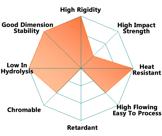 Easy to process/High rigidity/High deformation temp/Low in hydrolysis